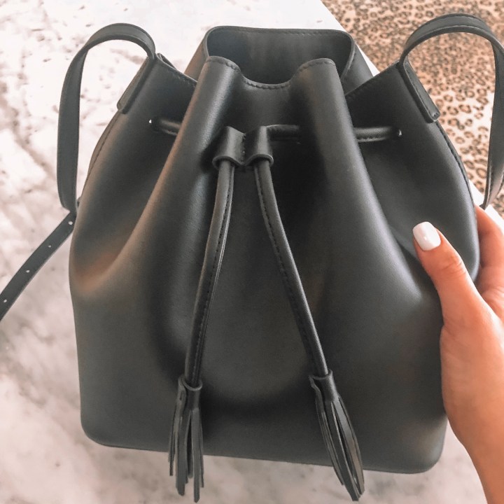Next, I picked out this black “Crossbody Bucket Bag.” I am all about practicality, & I enjoy being on the go, so I typically gravitate towards crossbody bags. This one comes in 4 colors: red currant (maroon), camel, black, & cloudless sky (light blue). It’s extremely roomy for a crossbody, and I love that I can tighten the top with the draw strings!
